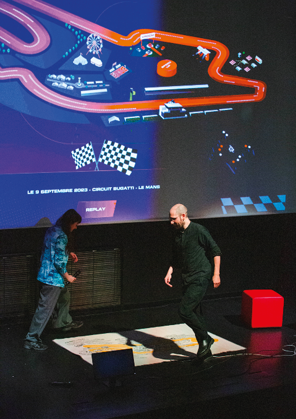 Le 9 septembre 2023, nous nous sommes rendus au Mans pour assister à la deuxième édition du GP explorer, une course automobile organisée par le youtubeur Squeezie, au cours de laquelle se sont affronté.e.s 24 célèbres créateur.rice.s de contenu sur Internet. Mobilisant plus de 60’000 spectateur.ice.s sur place et 1,3 millions de viewers à distance sur la plateforme Twitch. Cet événement IRL (“in real life”) est volontiers présenté par les célébrités du web qui y ont participé comme un aboutissement social et technologique.